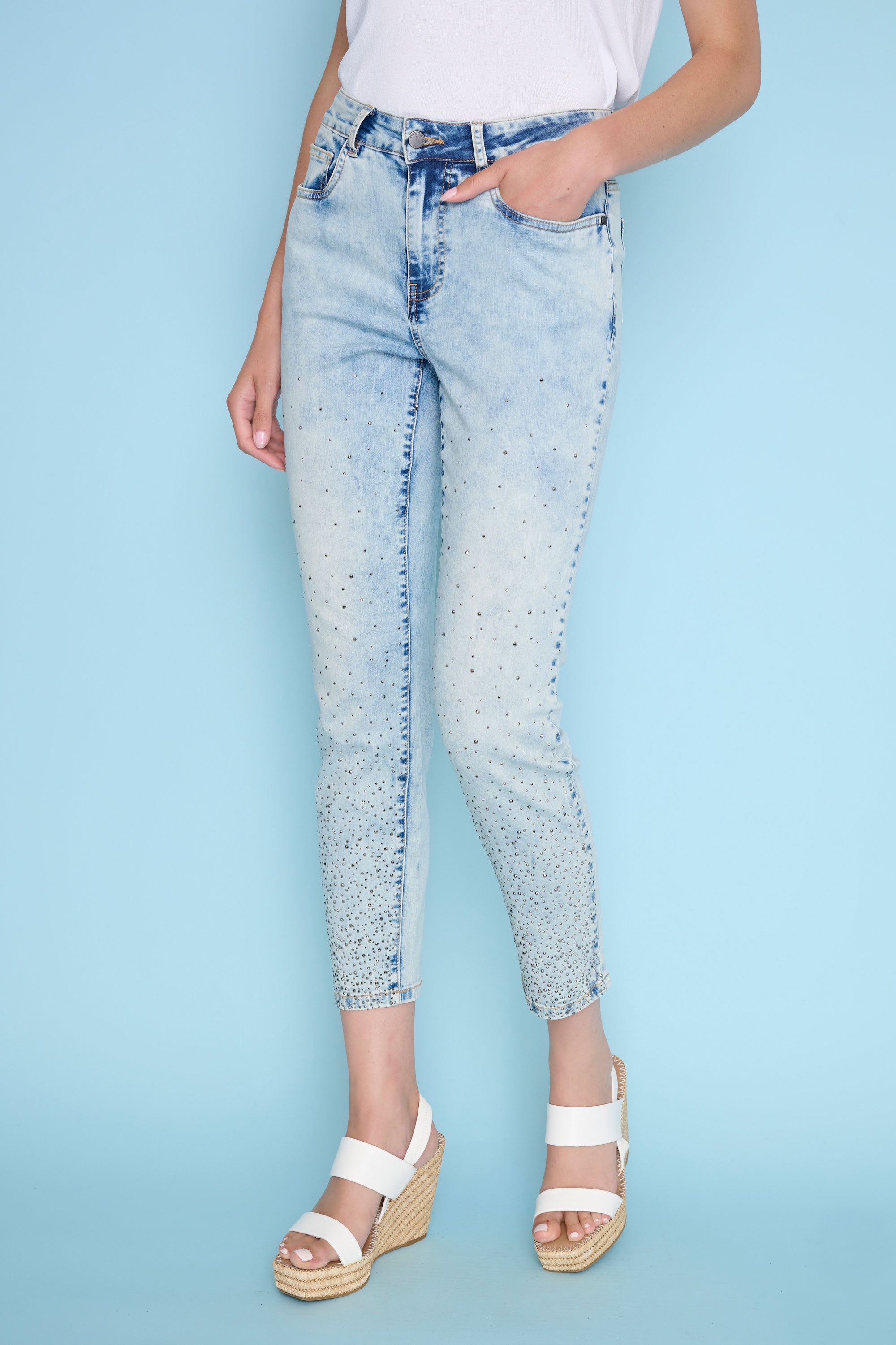 Rhinestone Trim Crop Jeans