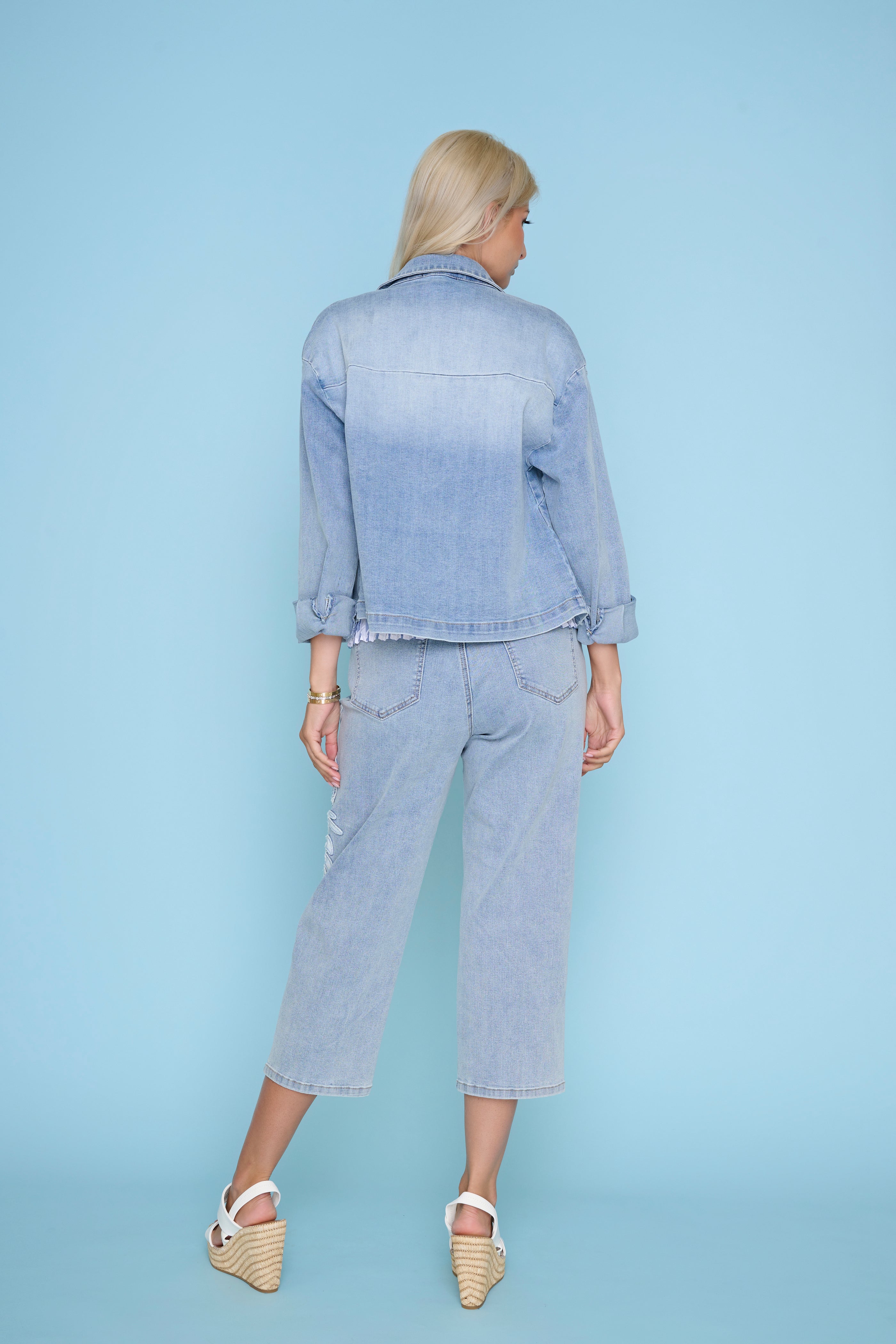 Floral Applique Denim Capri
