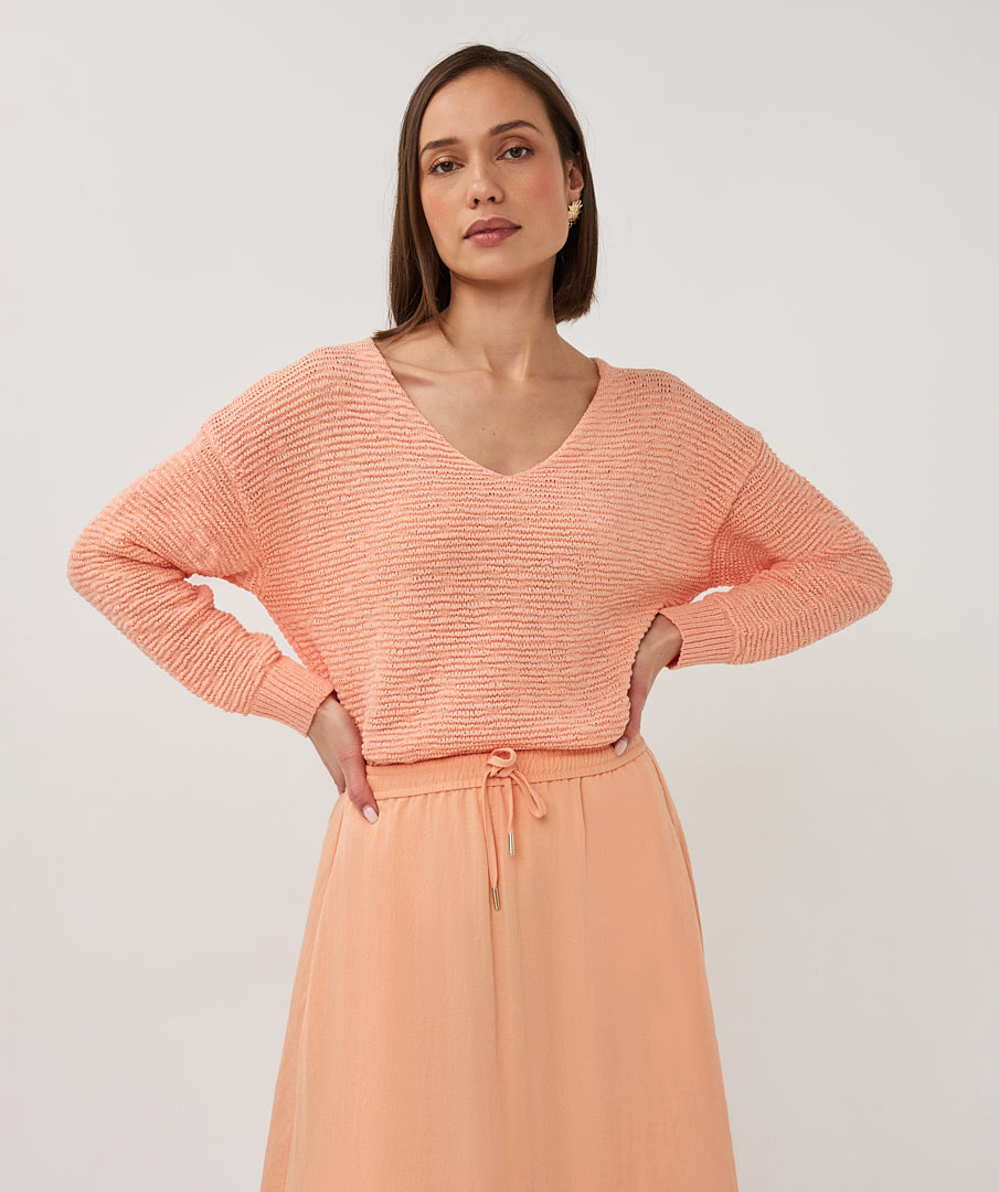 Tape Yarn V-Neck Pullover